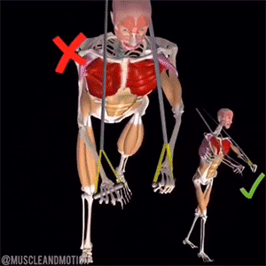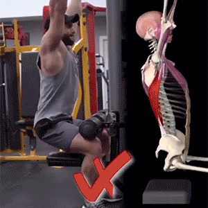 正确的练法为⛹🏻:始终维持上身稳定姿态,富有控制力地收拢两侧肩胛,随即内收双臂来针对、大幅地调动背阔肌发力!